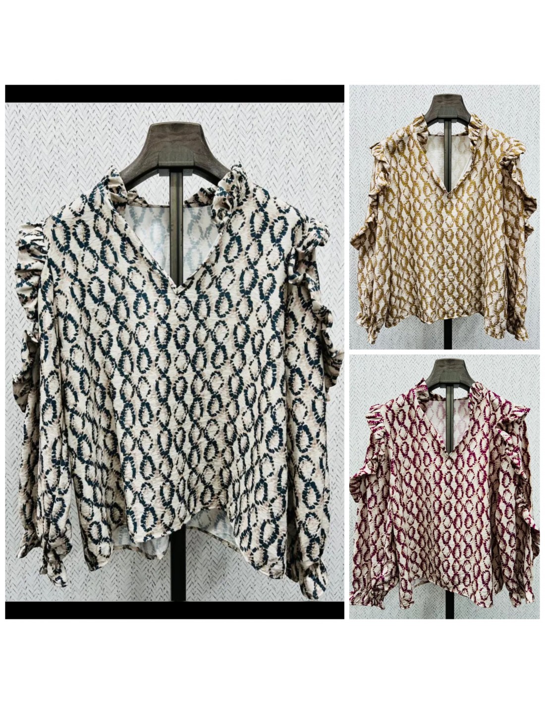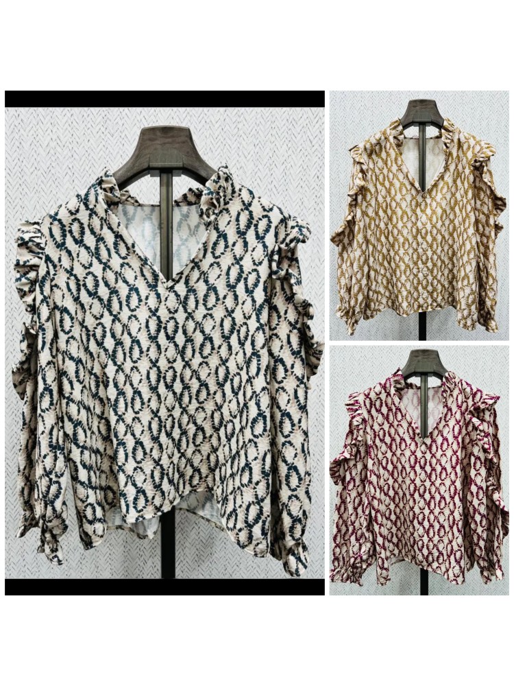 Camisa estampado ovalado con volante en brazos