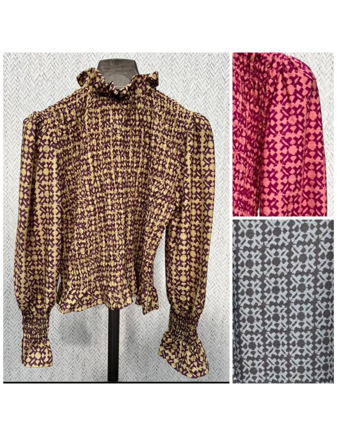 Camisa fruncida estampado cruces