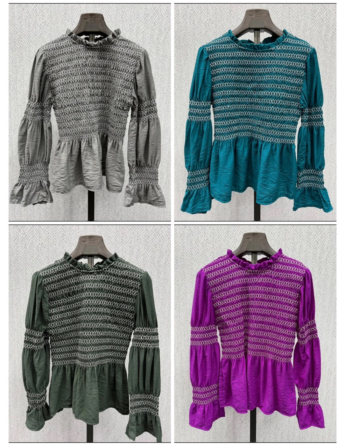 Camisa frunce en cuerpo y manga con hilitos