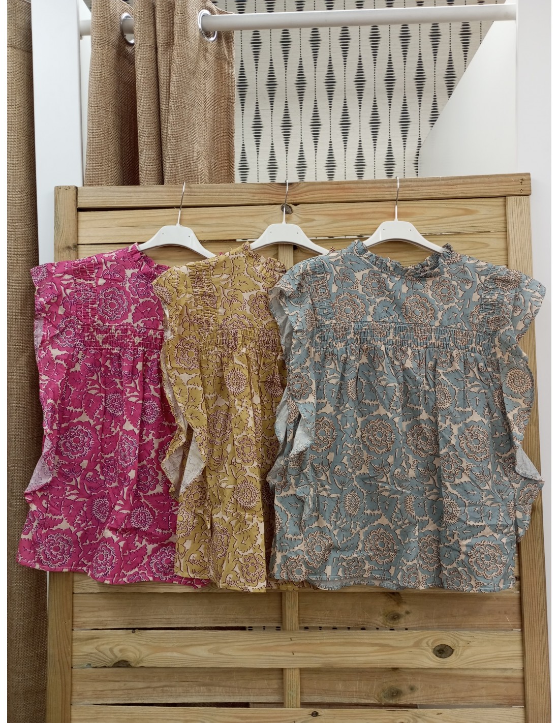 camisa flores con volante en sisa