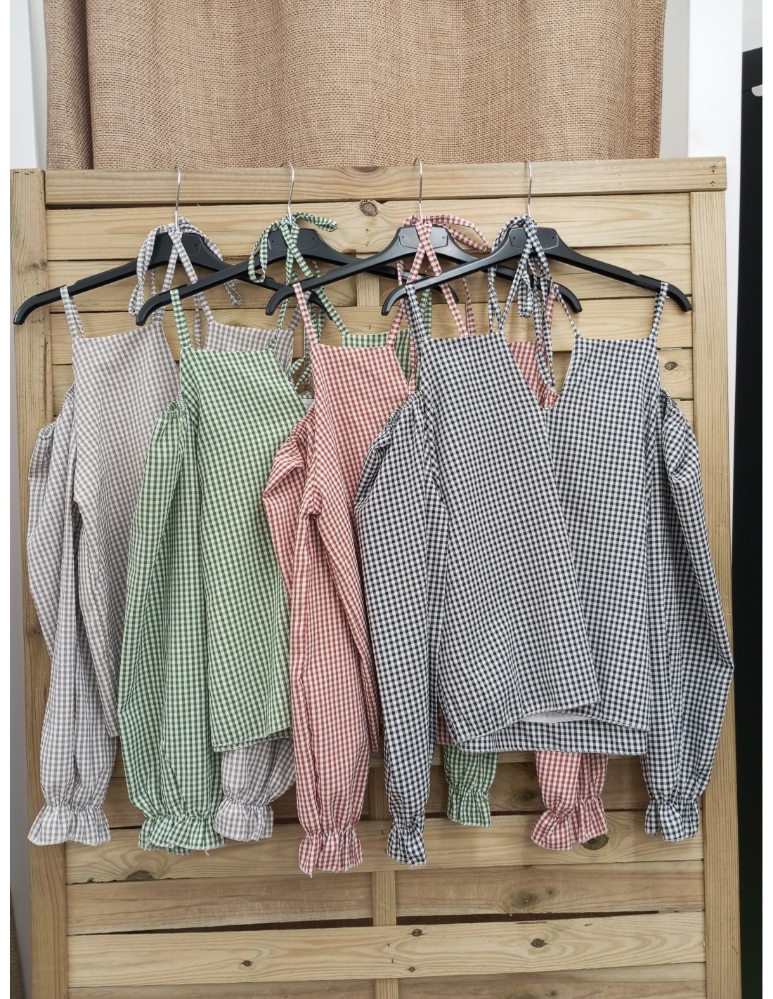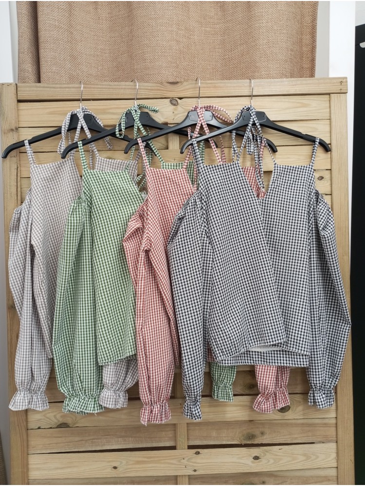 Camisa vichy escote cruzado