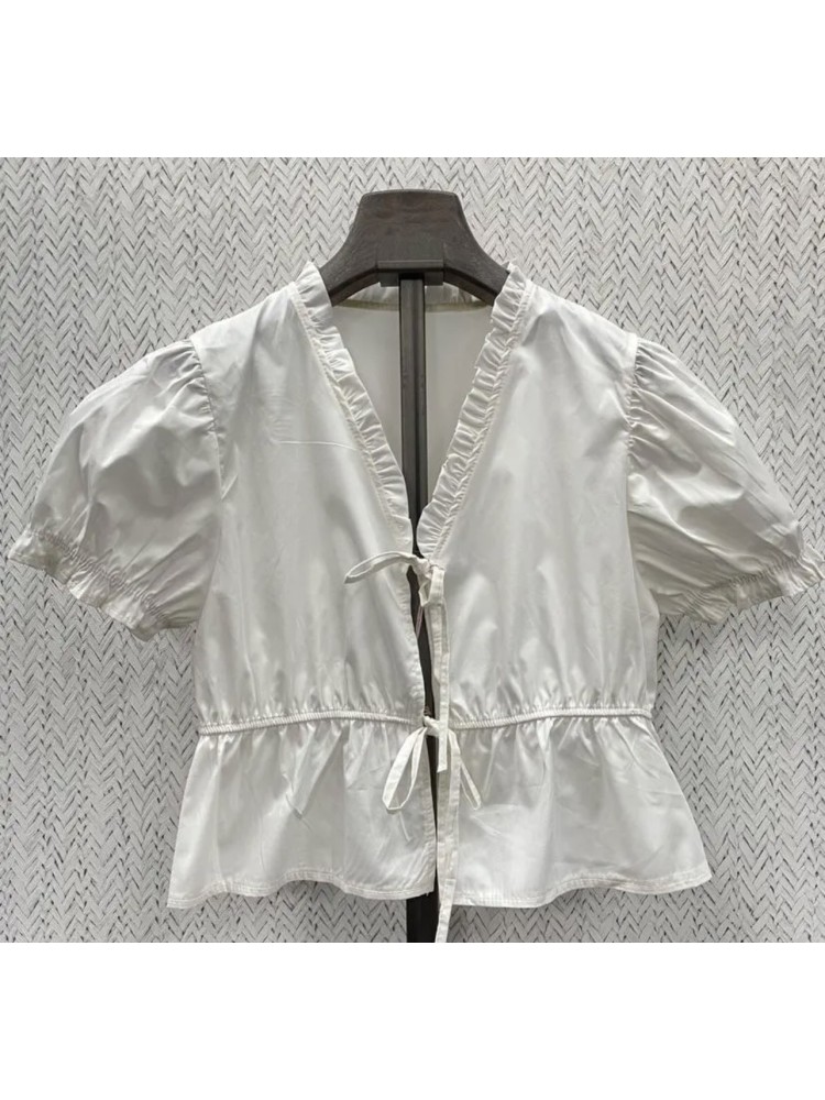 Camisa doble lazo de pico con volantito