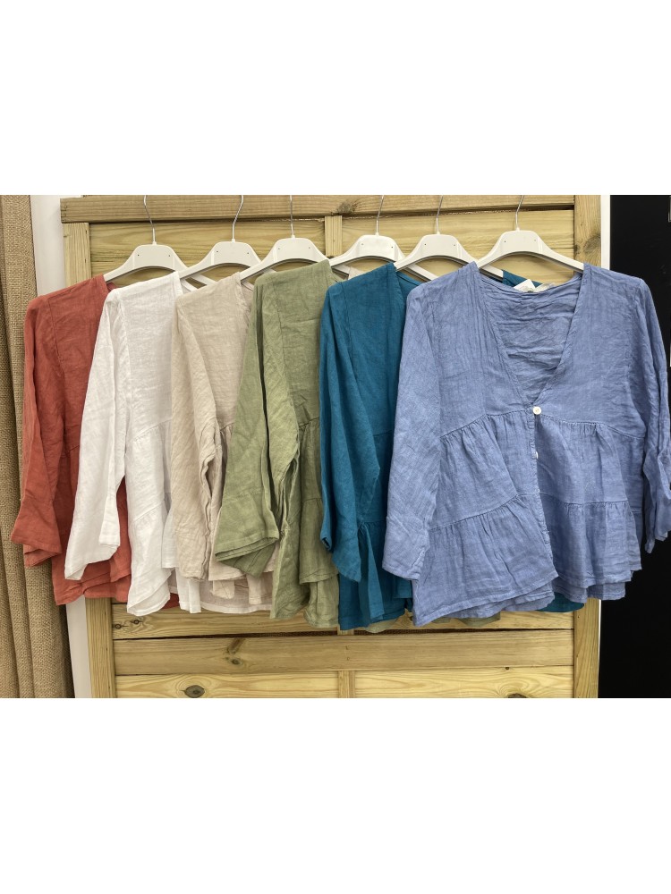 Camisa de lino con botones doble volante