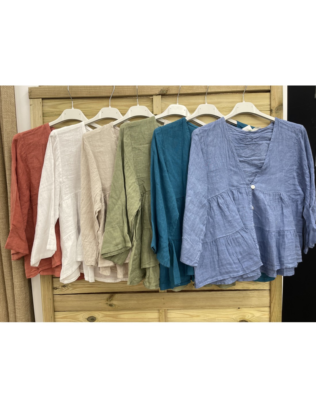 camisa lino triple lazo cuello en pico