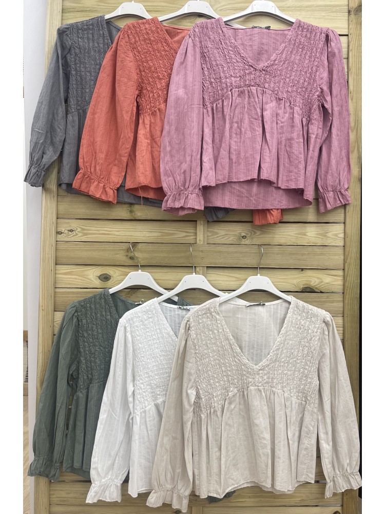 camisa con pecho fruncido brillito plata