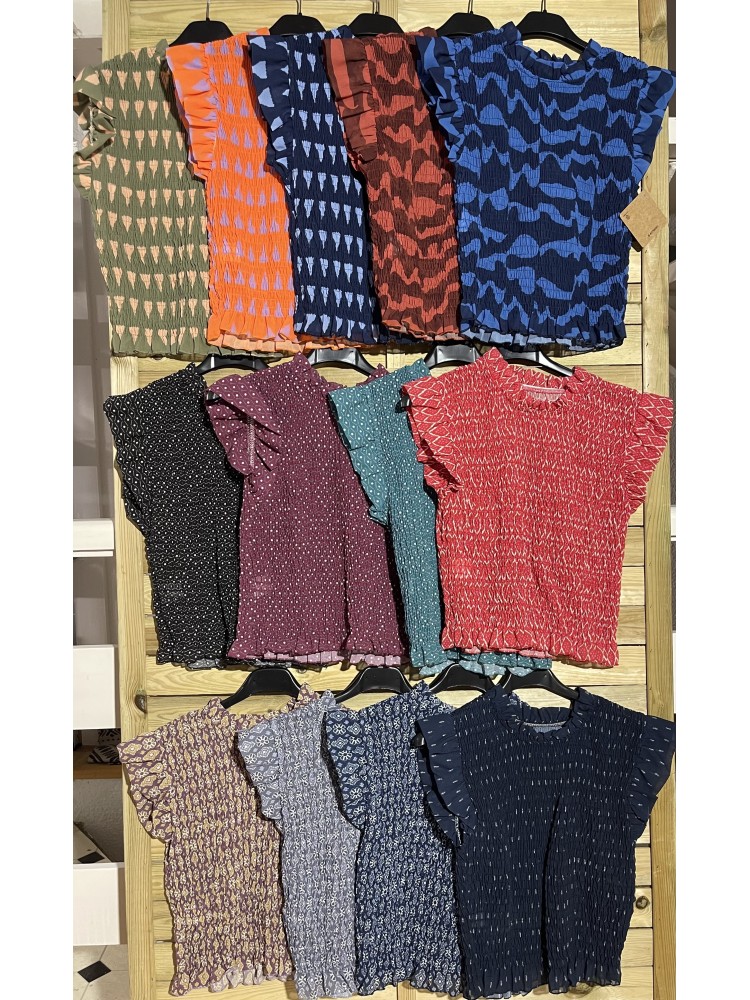 Top fruncido ondas manga francesa