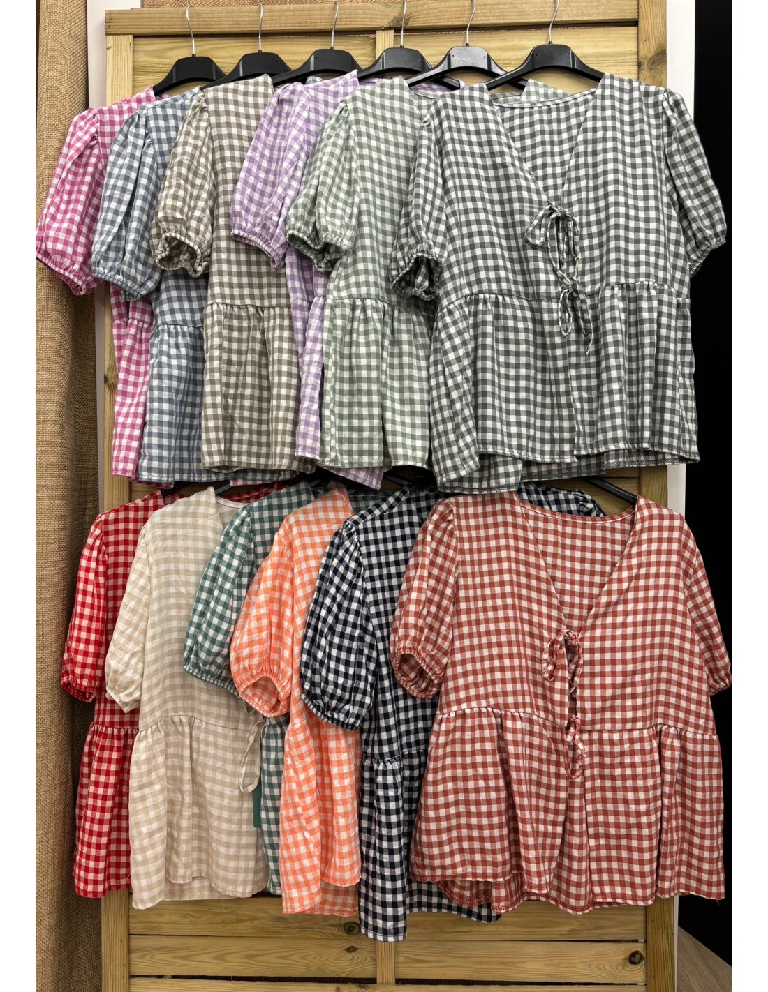Camisa vichy doble lazo con corte y vuelo