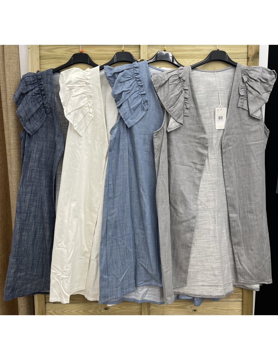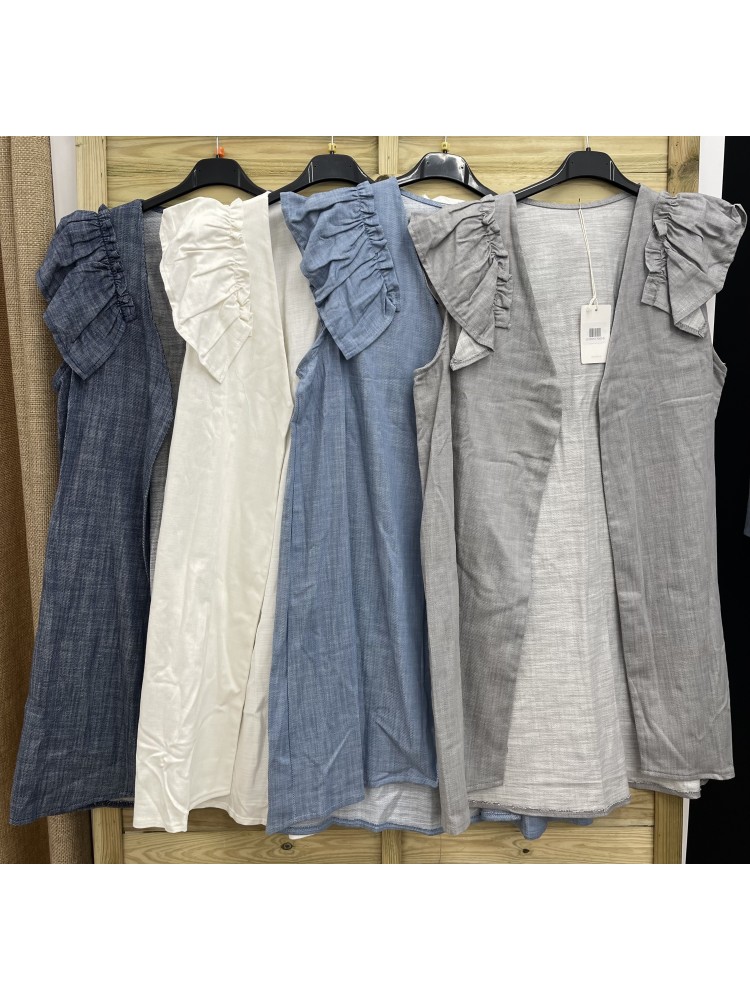 Chaleco vaquero midi con volante en hombros