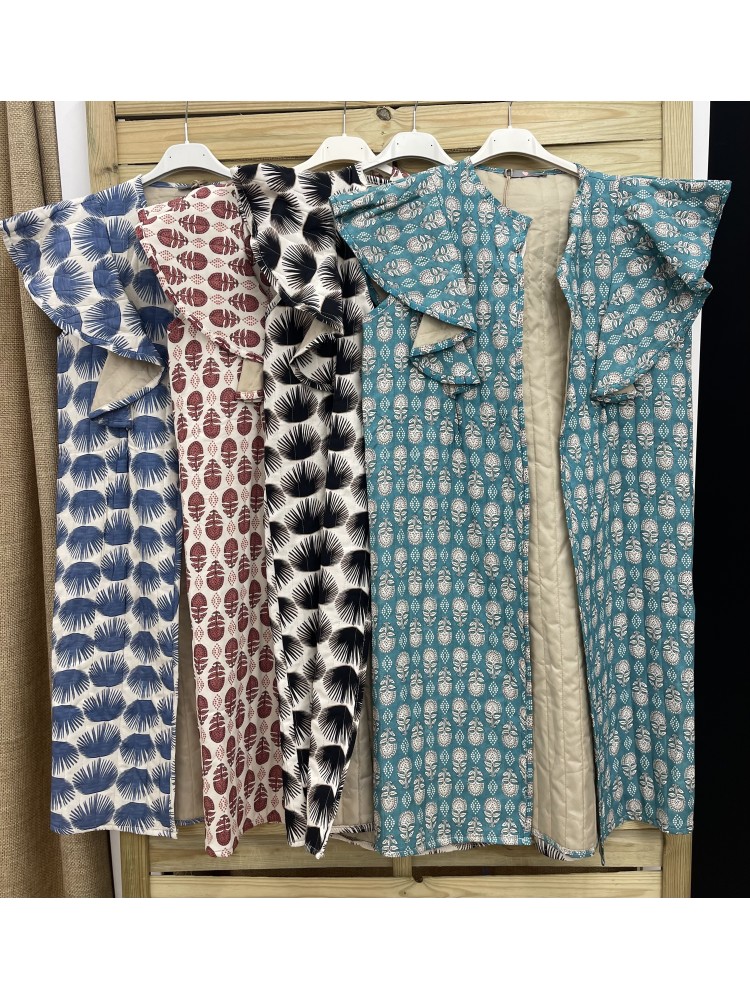 Chaleco largo estampado con volantes