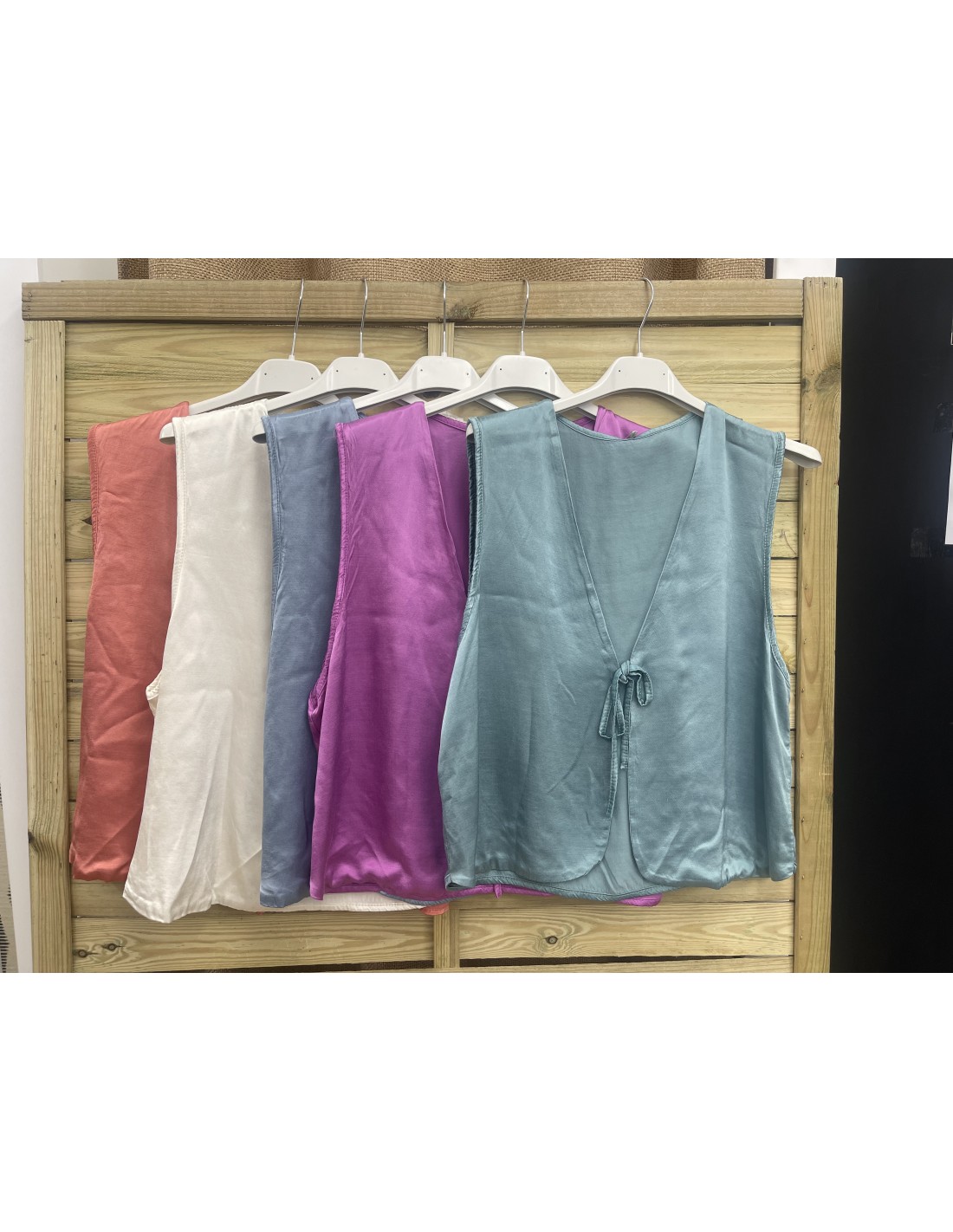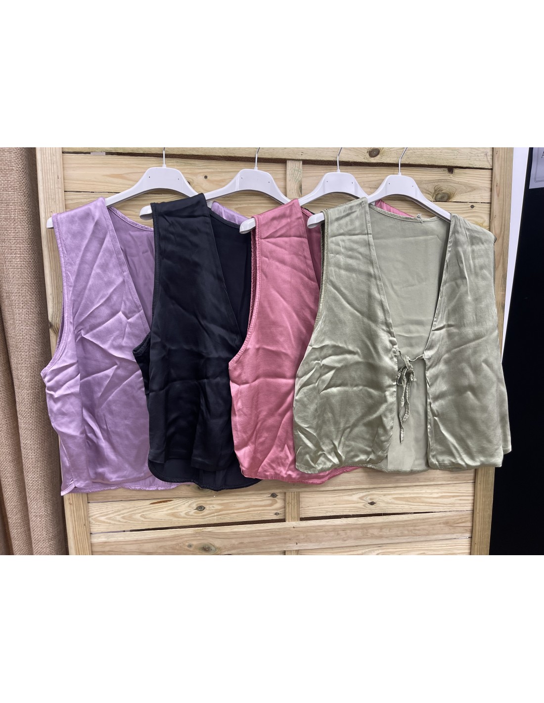 chaleco de saten con lazo