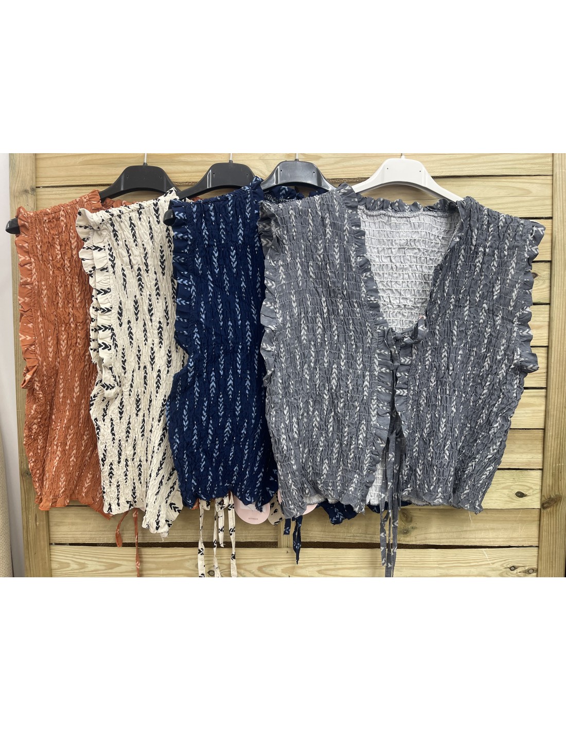 Chaleco fruncido doble lazo trigo