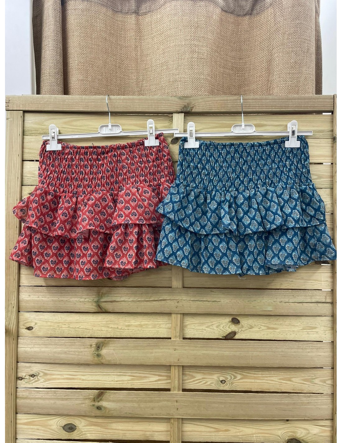 falda mini de gasa fruncida y volantitos con flores