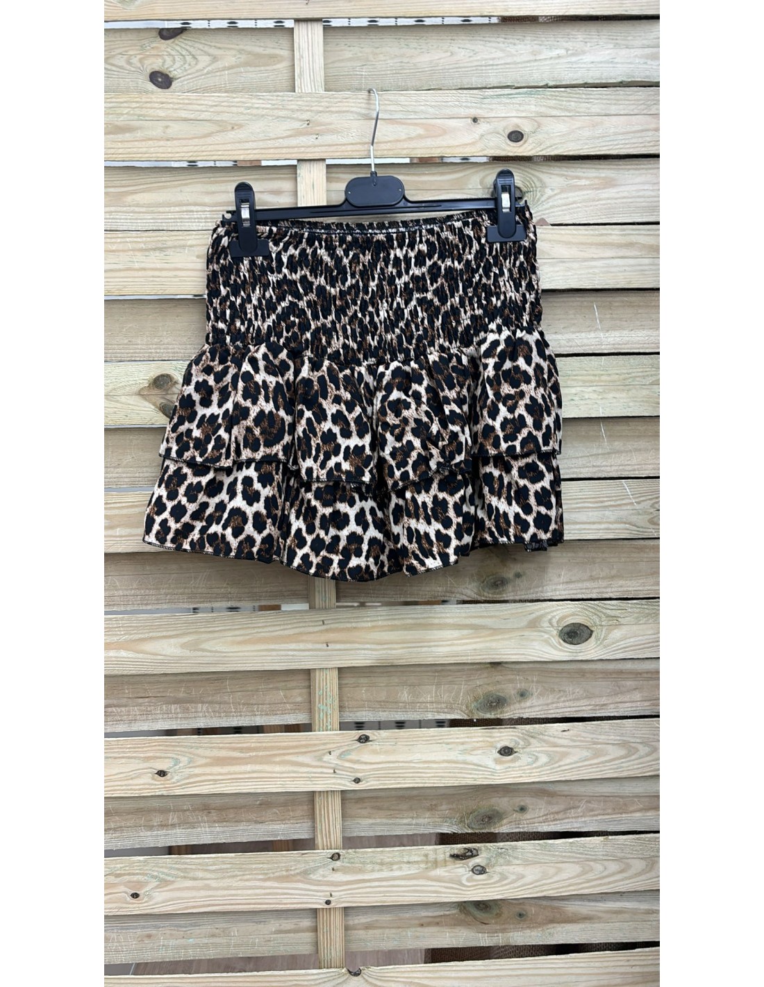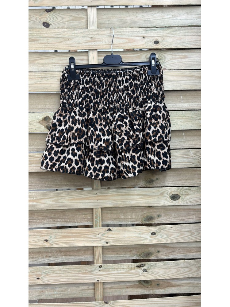Falda mini leopardo doble volante