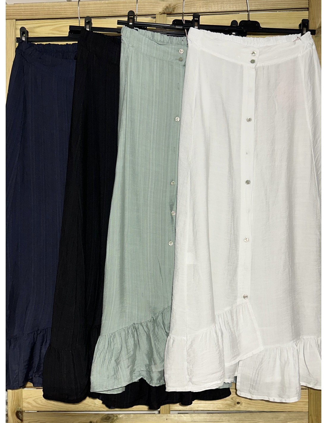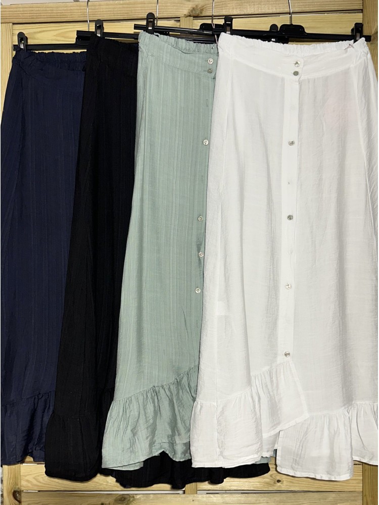 Falda lisa con botones y volante