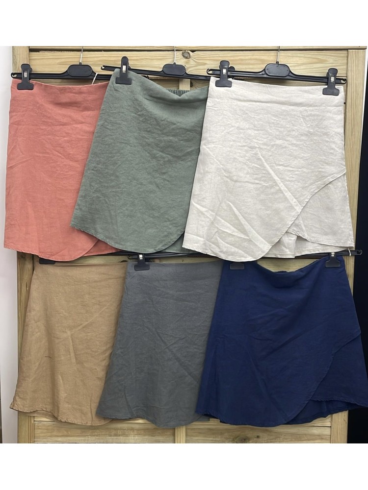 Falda mini cruzada de lino