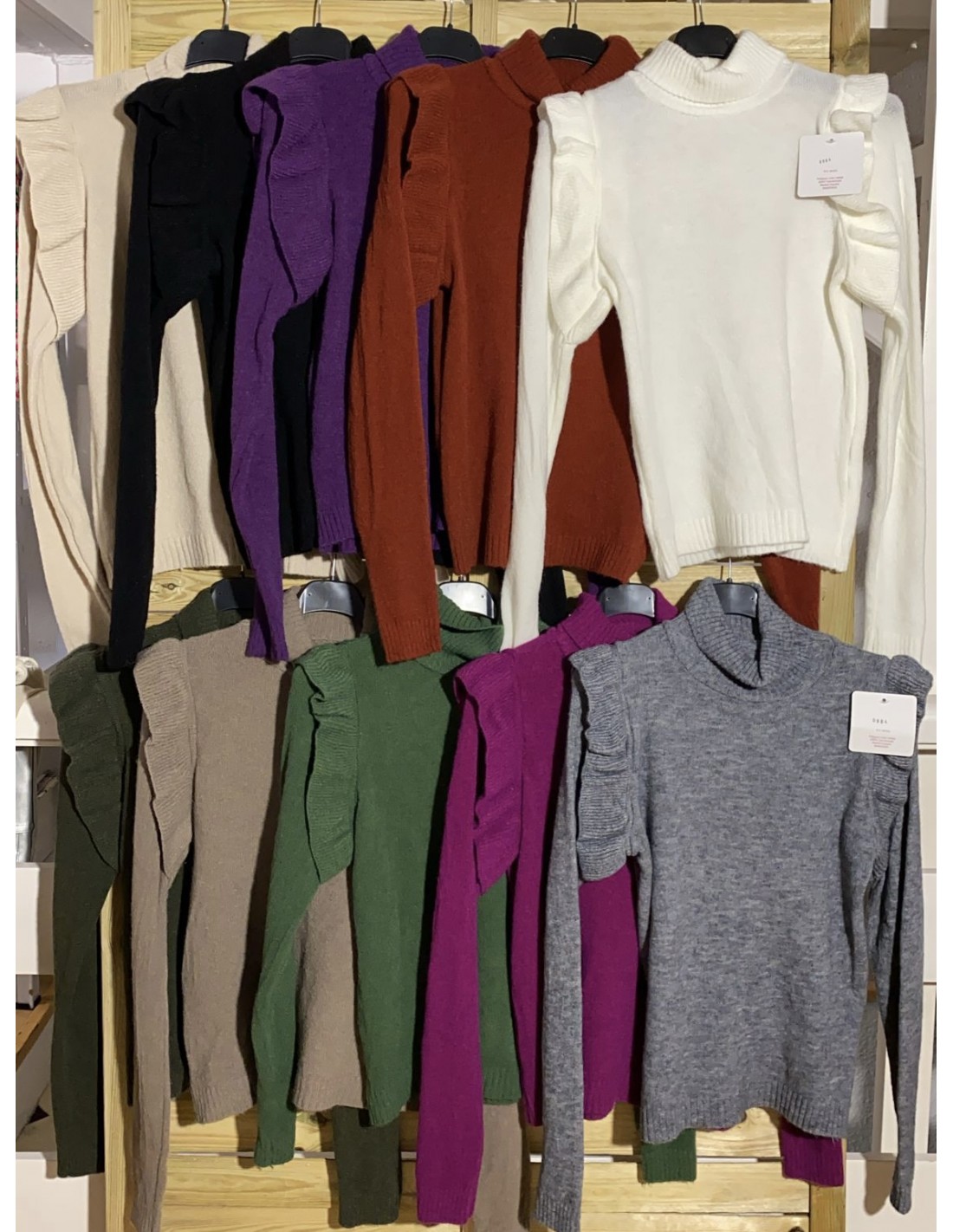 Jersey con cuello y volantito en hombros