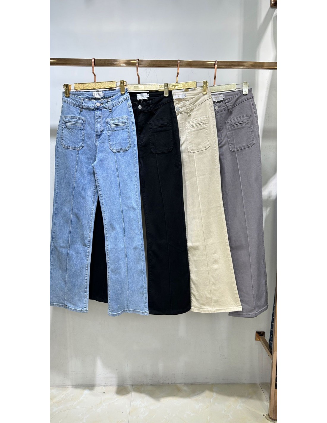 Jeans raya vertical con bolsillo parche
