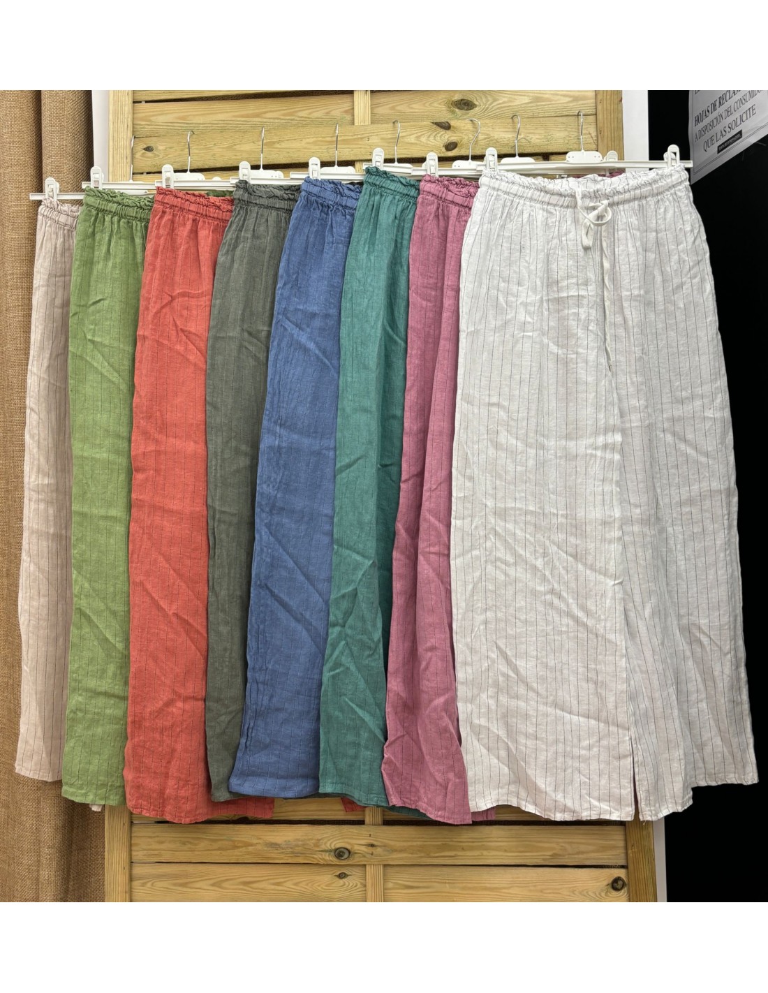 Pantalon largo lino raya negra