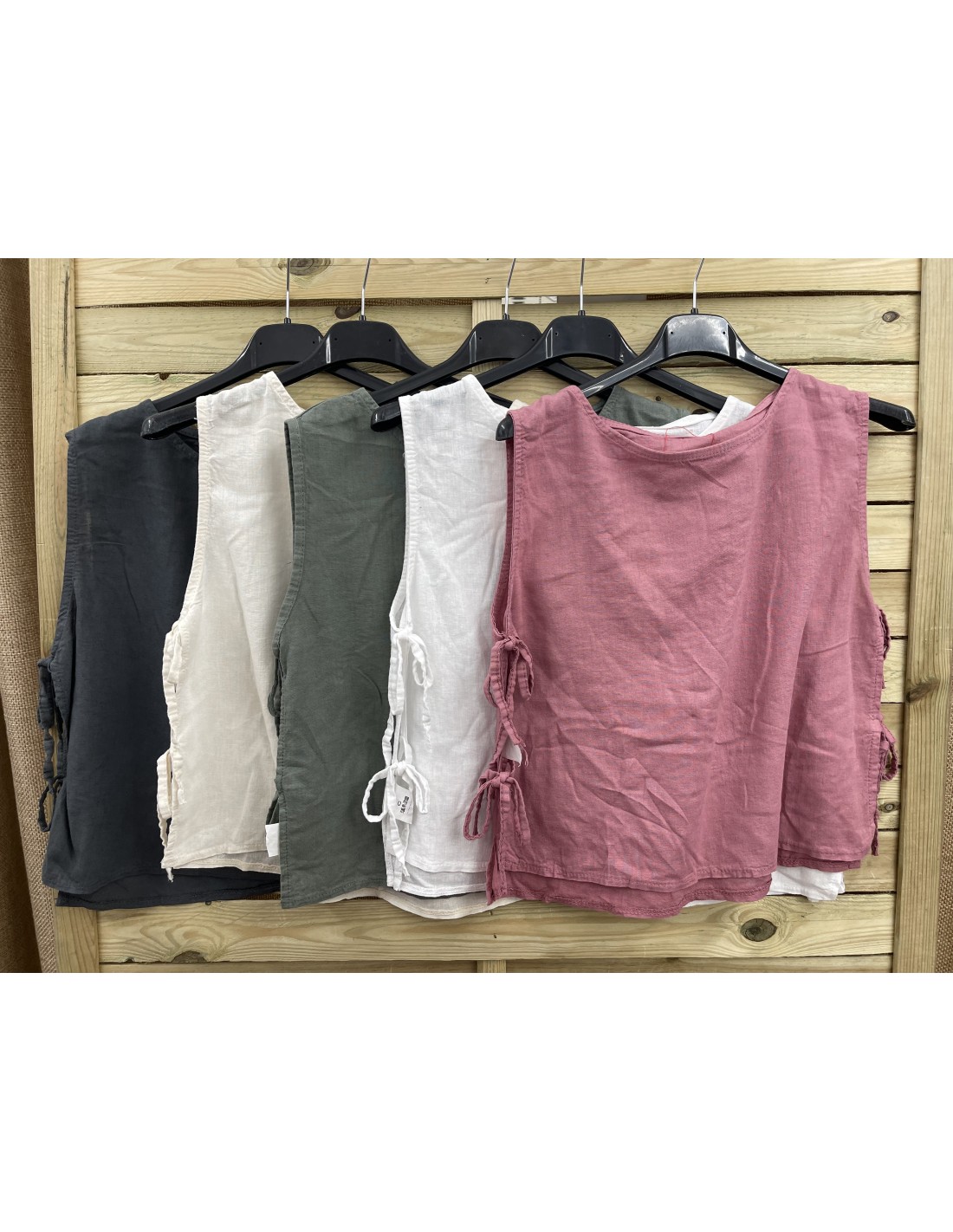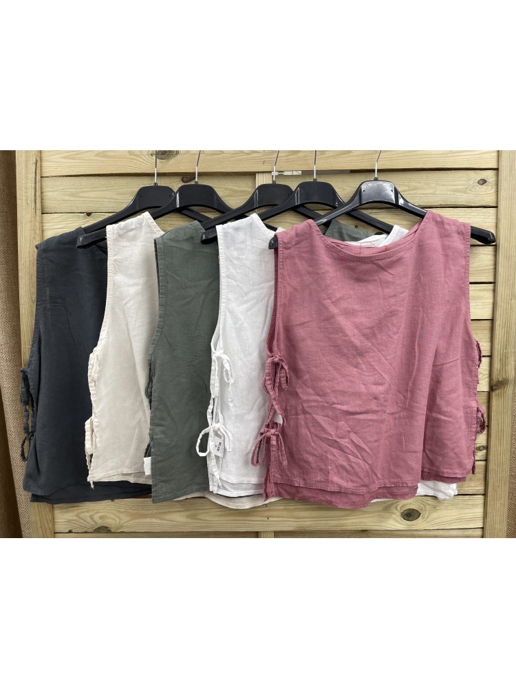 top de lino corto con frunce en pecho
