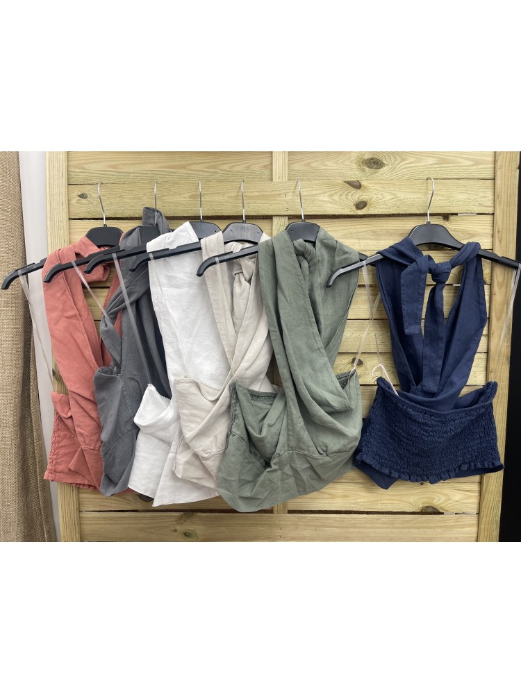 Top de lino parte delantera cruzada