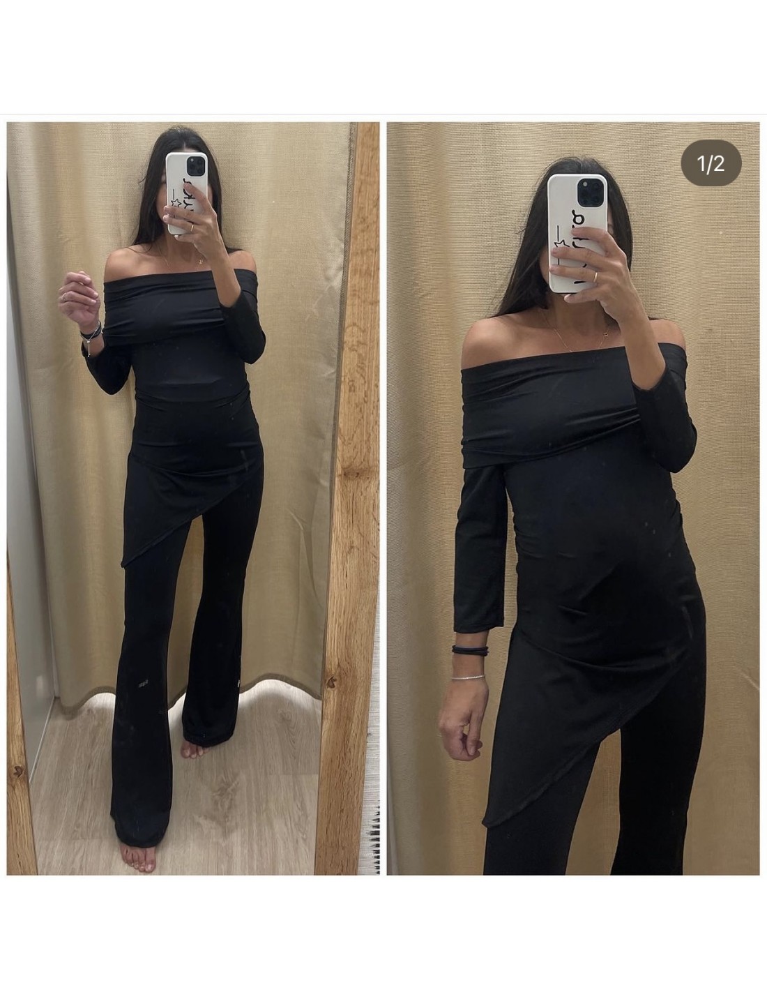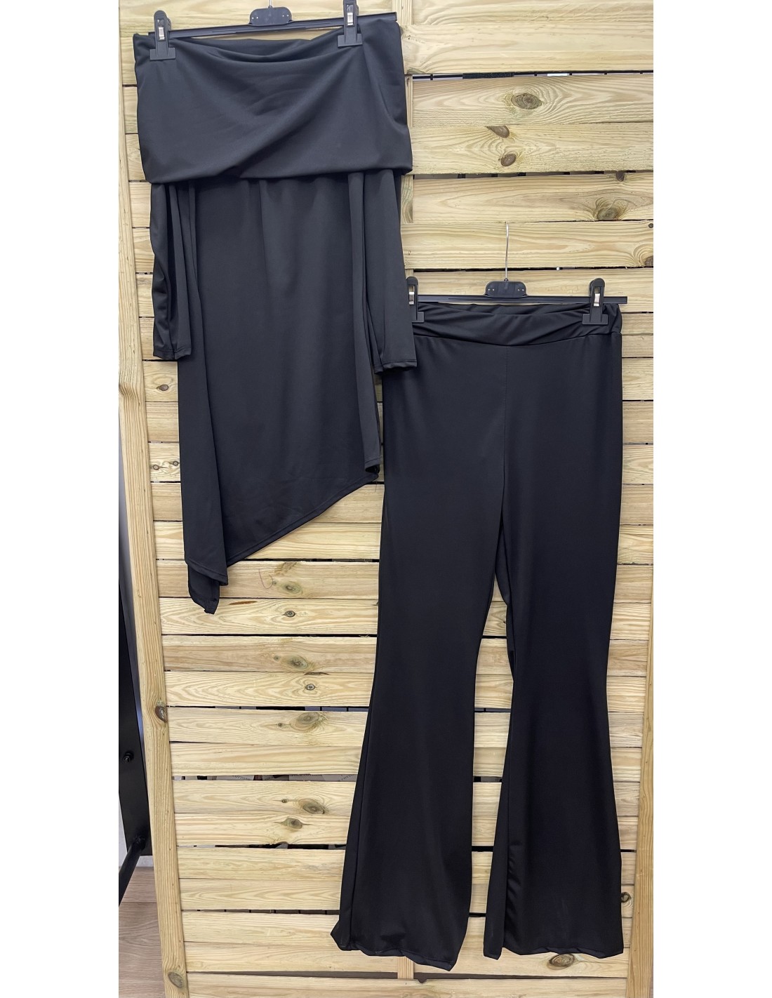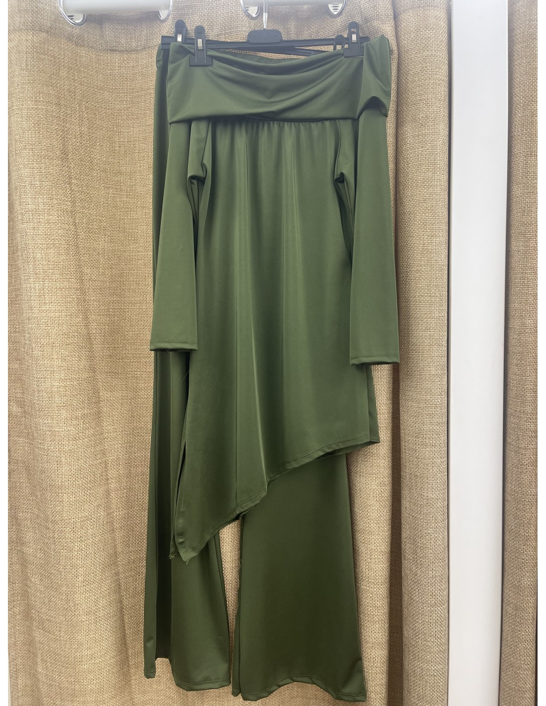 Conjunto de lycra de top asimetrico maxi cuello y pantalon de campana