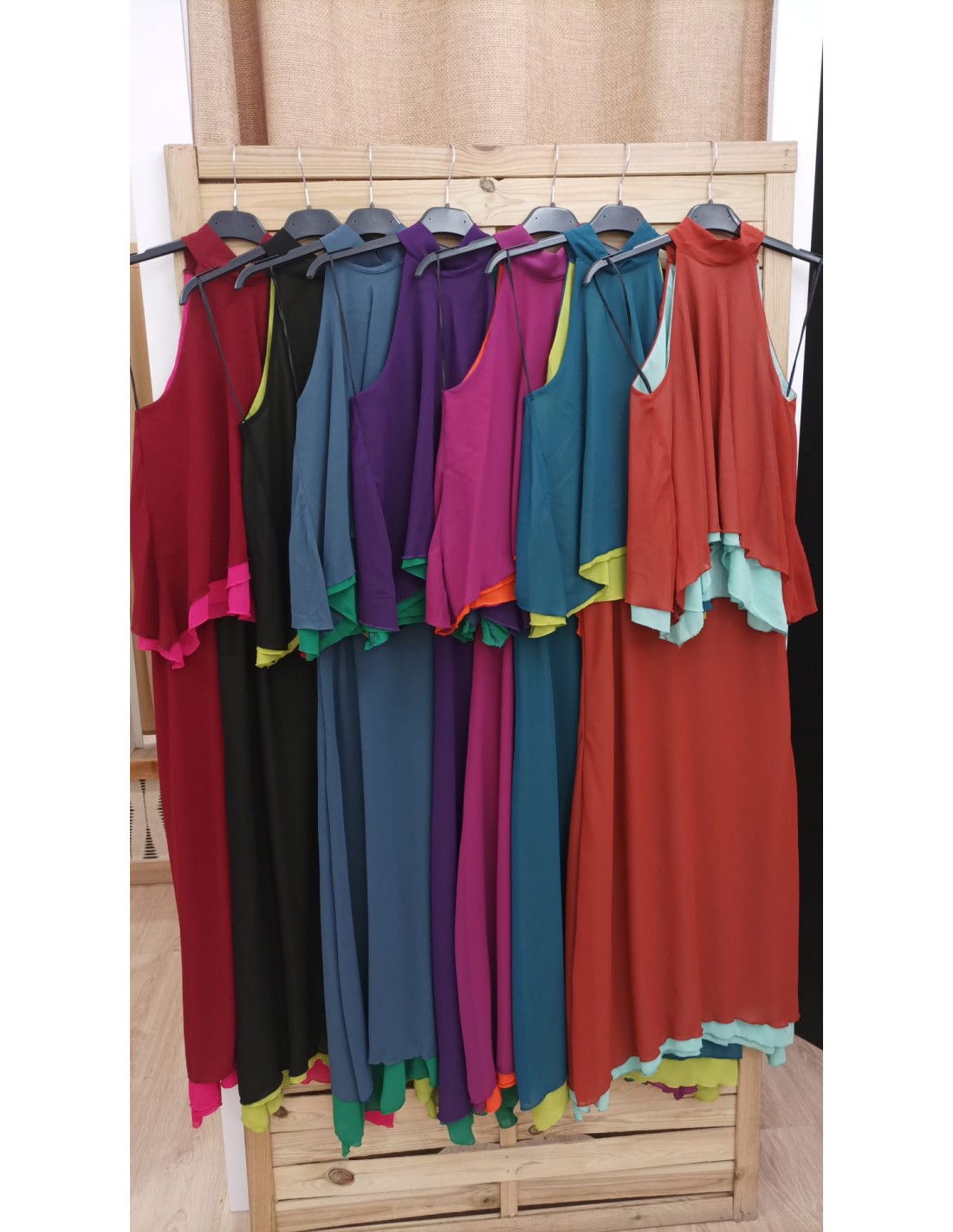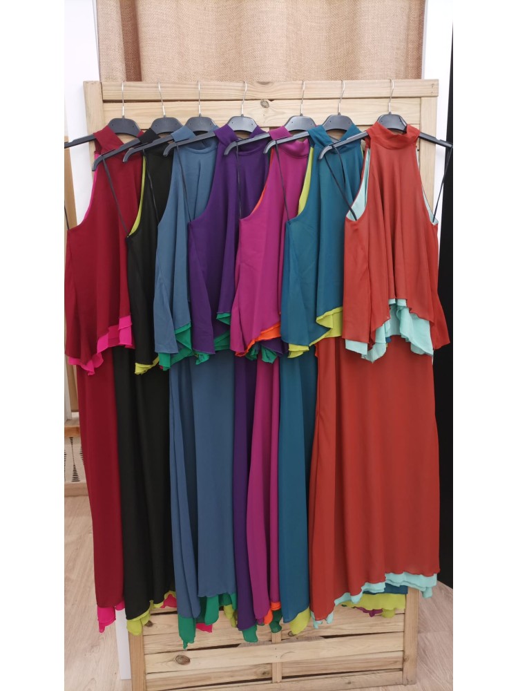 Vestido de lino con doble fruncido colores
