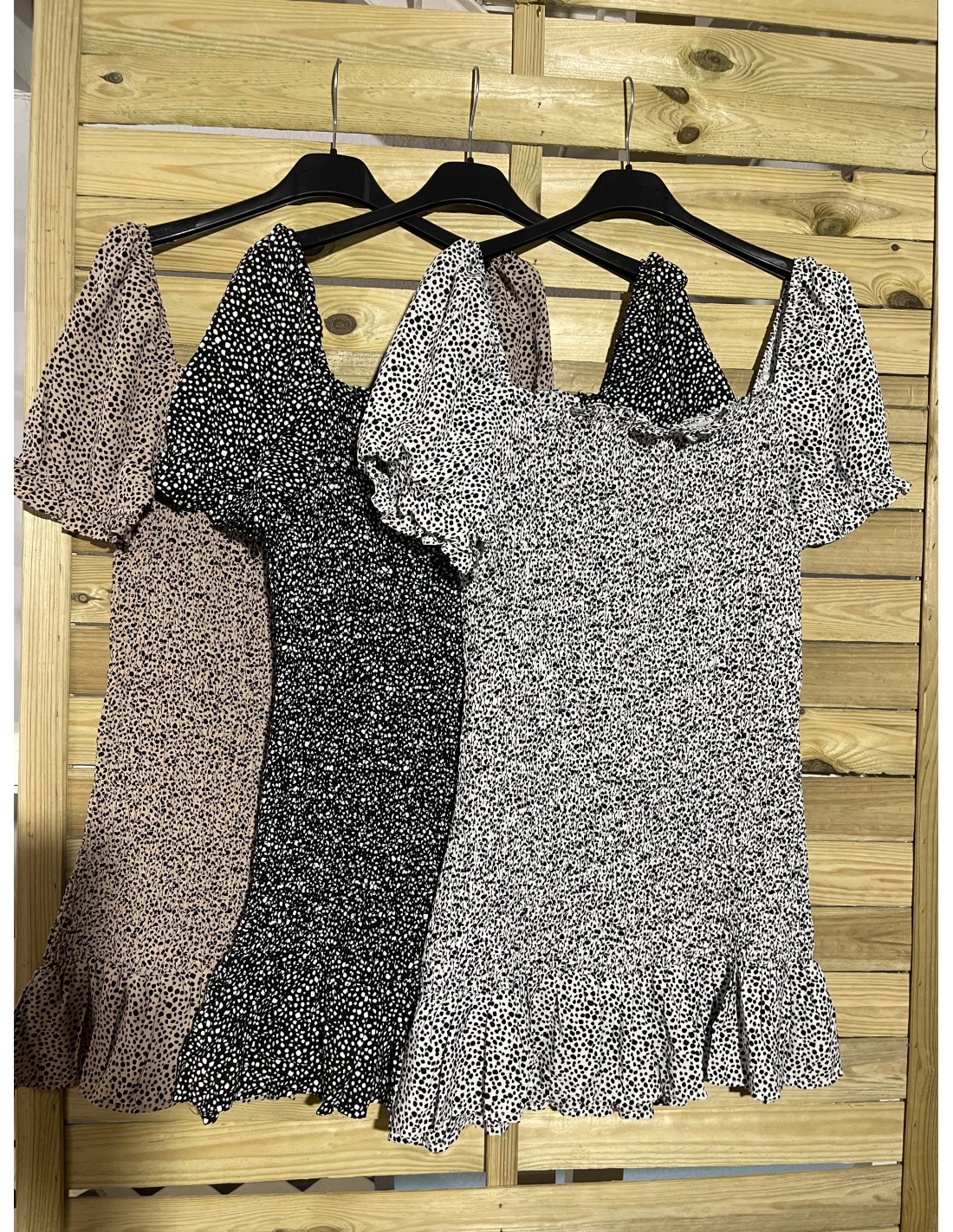vestido fruncido manchitas con volantitos