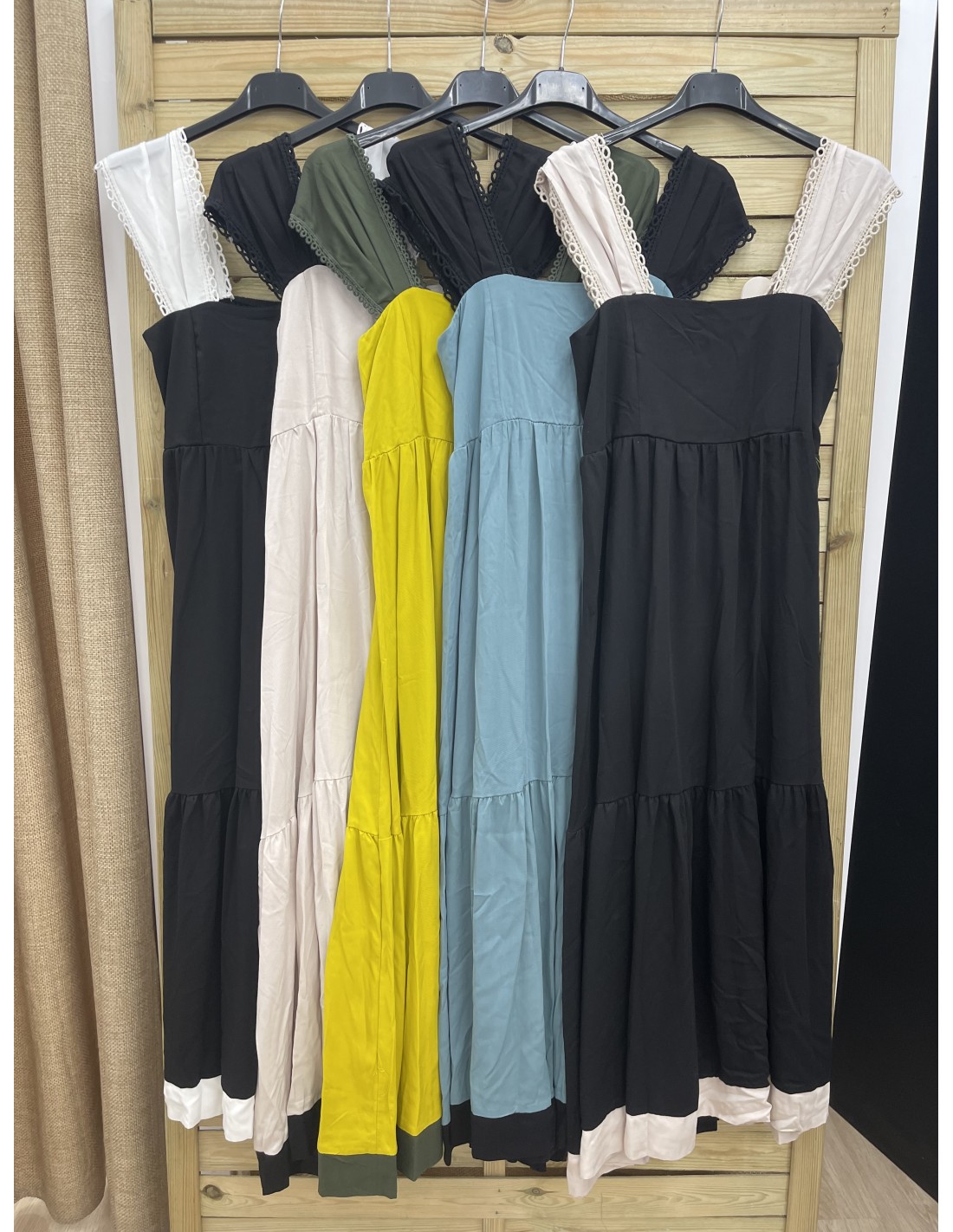 Vestido largo tirantes puntilla bicolor