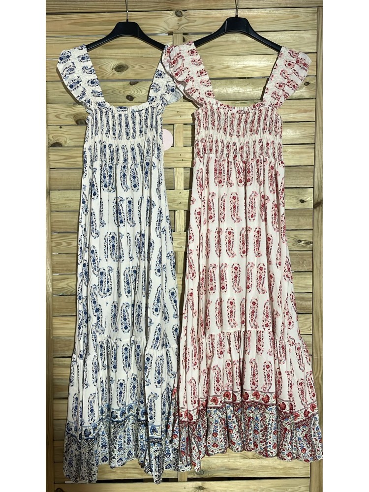 Vestido largo pecho fruncido cachemir