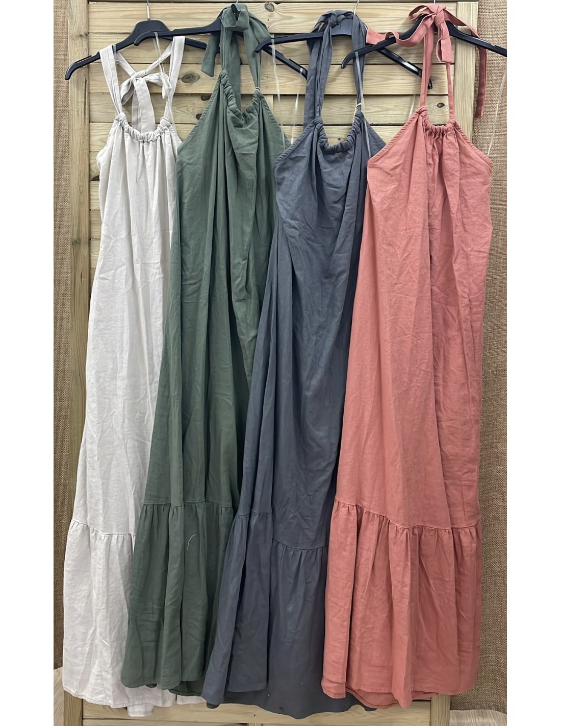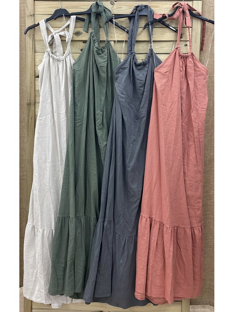 Vestido largo de lino cogido al cuello