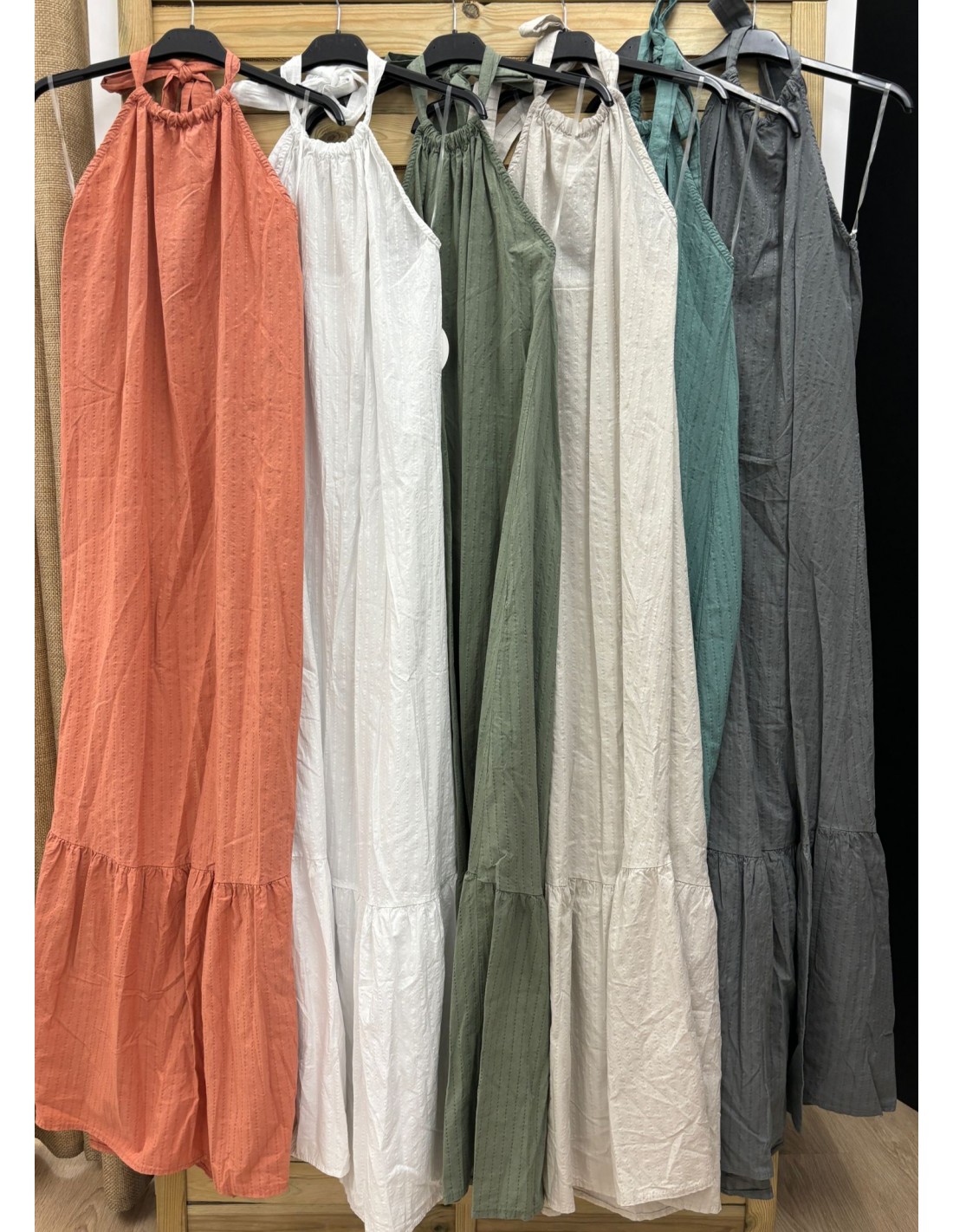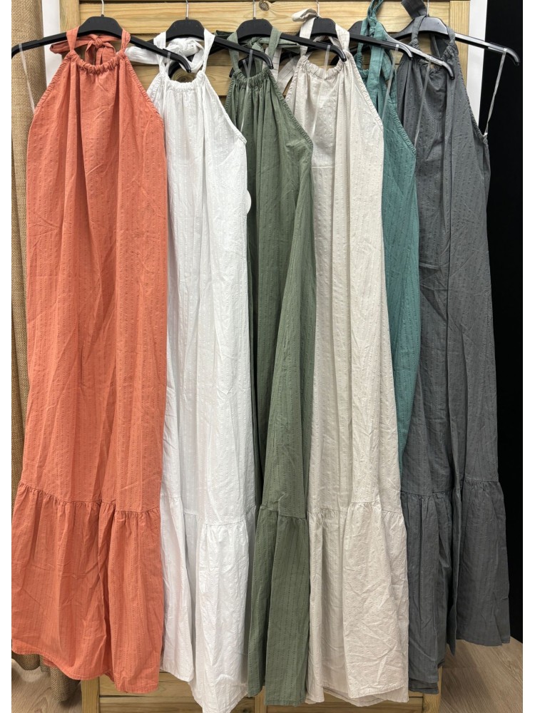 Vestido halter popelin volante en bajo