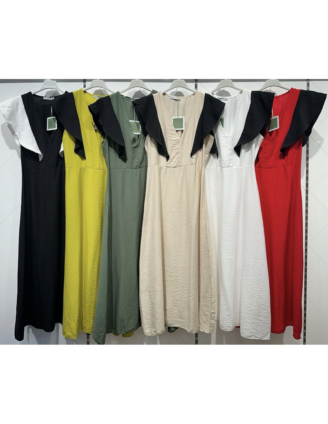 Vestido largo maxi volantes con corte